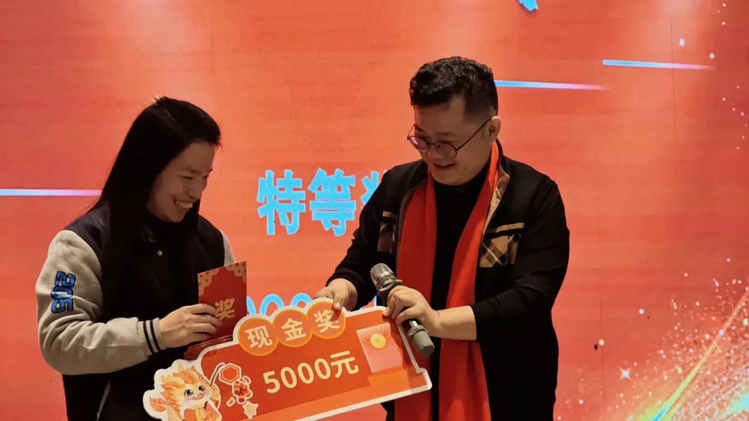 獎(jiǎng)品豐盛誘人是今年年會(huì)的又一大亮點(diǎn),抽獎(jiǎng)環(huán)節(jié)激動(dòng)人心。隨著一個(gè)個(gè)幸運(yùn)兒走上領(lǐng)獎(jiǎng)臺(tái),現(xiàn)場(chǎng)氛圍愈發(fā)熱烈,員工們紛紛關(guān)注自己的抽獎(jiǎng)券號(hào),期待著幸運(yùn)之神的降臨。讓我們恭喜本晚所有獲獎(jiǎng)的同事,也祝福在場(chǎng)所有伙伴在今后每一天獲得更棒的運(yùn)氣!