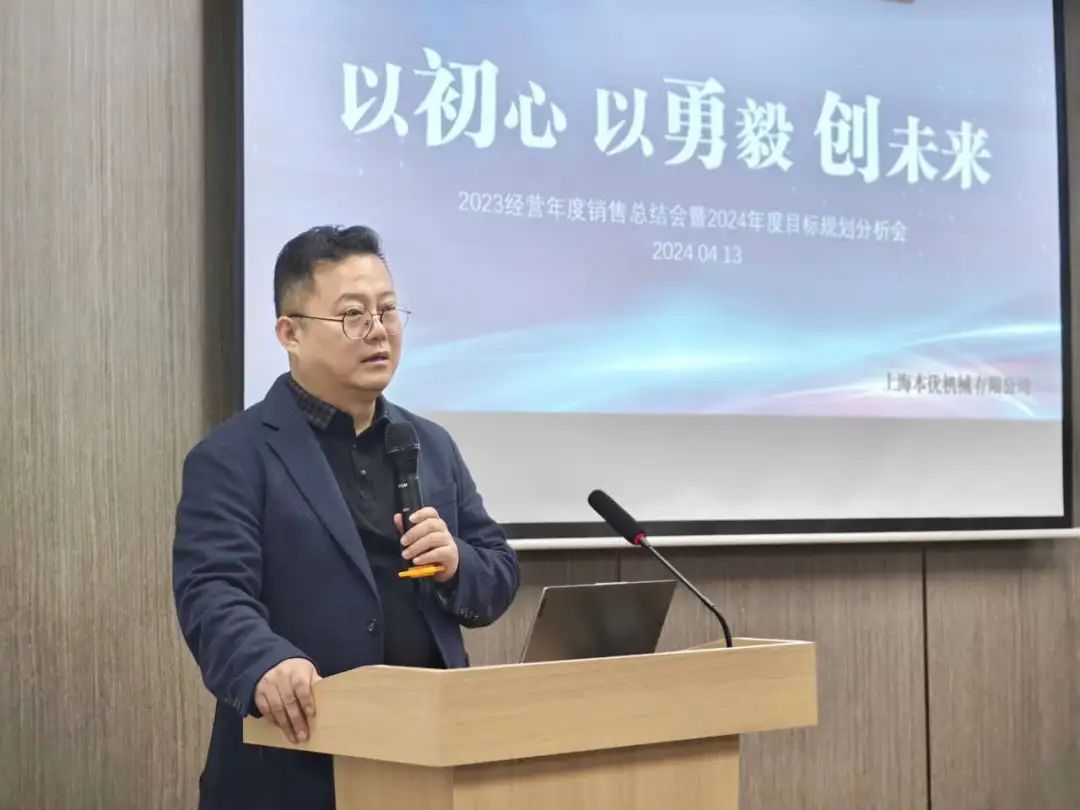 踔厲奮發(fā)守初心,勇毅前行向未來。2024年4月13日,本優(yōu)機(jī)械2023經(jīng)營年度(2023.4.1--2024.3.31)銷售總結(jié)會暨2024年度目標(biāo)規(guī)劃分析會在徐州隆重召開,董事長胡金保攜銷售中心全體銷售人員參會。此次盛會不僅是對公司過去一年成績的總結(jié)表彰,更是對2024年業(yè)務(wù)拓展與服務(wù)升級的深度布局。