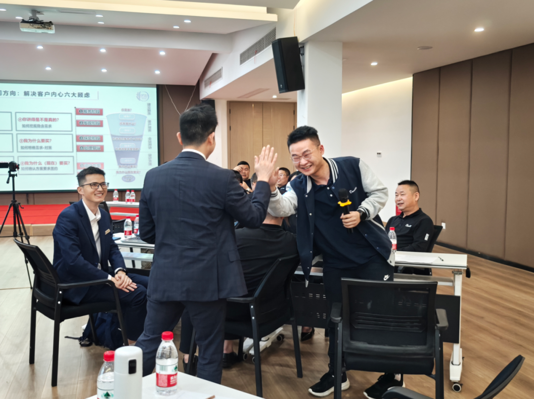 培訓(xùn)老師風(fēng)趣幽默的講了金牌銷售的成長體系,現(xiàn)場氣氛活躍,小伙伴們熱情高漲,紛紛認(rèn)真記錄拍照,根據(jù)培訓(xùn)內(nèi)容,進(jìn)行平時銷售流程中實際問題的討論。