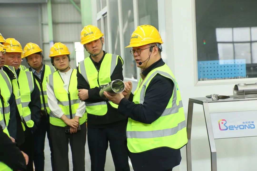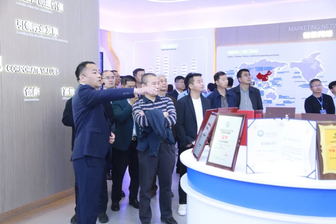 協(xié)會領(lǐng)導(dǎo)及參會代表蒞臨本優(yōu)加工基地,董事長胡金保率團隊向大家介紹本優(yōu)機械近二十年來的創(chuàng)新發(fā)展。并帶領(lǐng)大家參觀了數(shù)字化展廳、研發(fā)中心實驗室及生產(chǎn)各加工工段。通過參觀大家基本了解了本優(yōu)的企業(yè)文化和車間管理情況,對產(chǎn)品的質(zhì)量和生產(chǎn)環(huán)節(jié)也有了更多的認識和理解。本優(yōu)公司展示的自動化、智能化的生產(chǎn)線及嚴格的質(zhì)量控制流程,給來訪的參會代表們留下了深刻的印象。