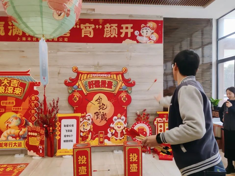 除了賞燈猜燈謎外,現(xiàn)場還安排了投壺納?;顒?,吸引了不少員工一展身手,既能體驗(yàn)分寸之上博弈的刺激,也能為來年增添滿滿吉兆。